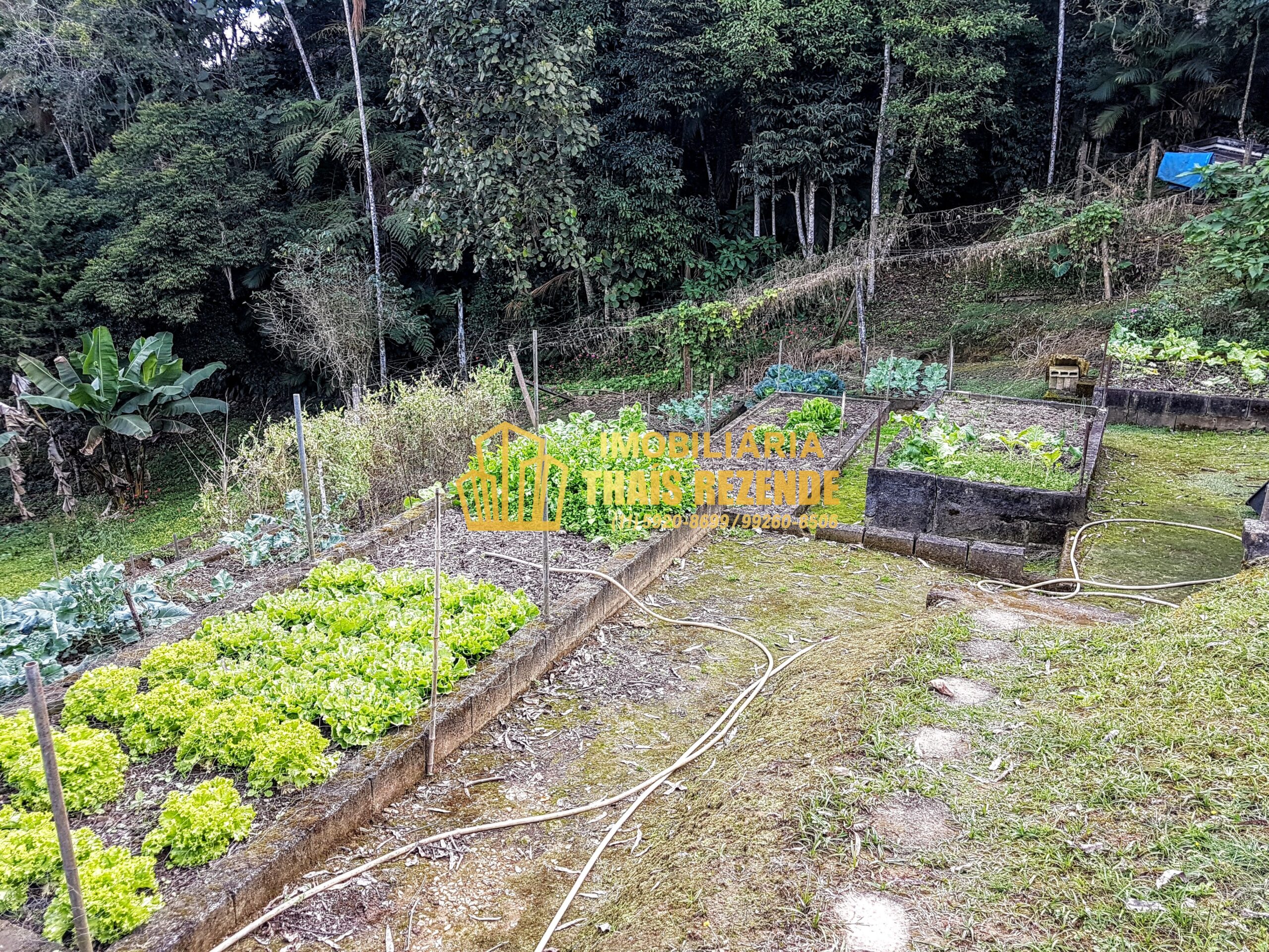 • Pomar produzindo: banana, laranja, limão, mexerica, caqui, lichia, goiaba, cambuci, jaca, amora, jabuticaba, pitanga, castanha, abacate, nêspera, araçá e açaí-juçara
